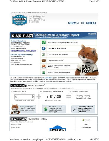 With only one previous owner, this automobile is ready for you.This extra clean exterior makes this used auto look new.Extra clean interior. Absolutely no rips, odors or abuse.This is a smoke-free automobile.There is no damage present on this vehicle.This vehicle has no defects.All power equipment is functioning properly.The mileage represented on this vehicle is accurate.The engine on this vehicle is running properly.This vehicle has a smooth shifting transmission.These tires have about half their life span left.