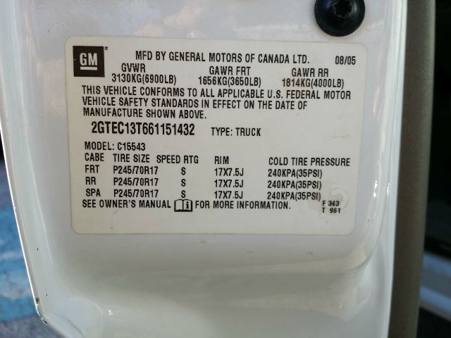 VIN is a unique identification number of every car. This model uses a 17-character serial number 2GTEC13T661151432, and the first 3 characters help to identify the maker of the vehicle. VIN code is absolutely essential, if you want to buy spare parts for your vehicle and really helps in preventing car theft.