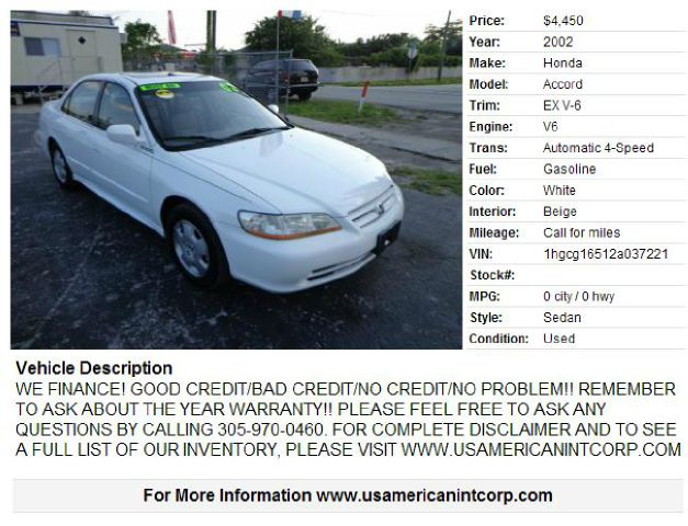 Used 2002 Honda Accord cars for sale