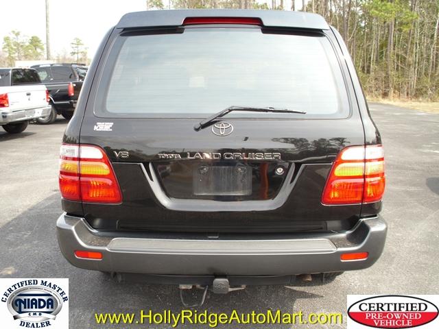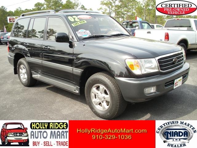 CERTIFIED PRE-OWNED..... This vehicle comes with a 90 day/4,500 mile Limited Warranty! Beautiful 2002 Toyota Land Cruiser. Only 86k original miles. Top of the line luxury SUV. One Owner, all factory original. Factory navigation w/ 2008 DVD update. All keys/remotes. All books included. Factory towing package. Factory power sunroof. Sirius satellite module included. 6 disc CD/DVD changer in center console. Dual heated power front buckets. Hardly a blemish anywhere, inside or out. All paint factory original. Non-smoker. Timing belt and water pump just changed. Fresh oil and filter. Long and complete maintenance history available. Much more! Holly Ridge Auto Mart is located just 30 minutes from downtown Wilmington or Jacksonville/Camp Lejeune. More Photos Available on Request. Free Carfax Report Available. Extended Service Contracts Available. Financing Assistance Available. For More information about this vehicle, give us a call..... 910-329-1036 OR VISIT WWW.HOLLYRIDGEAUTOMART.COM. Watch the videos to learn more about this vehicle and our Certified Pre-Owned Program. Holly Ridge Auto Mart, no gimmicks, just good deals! Come See.